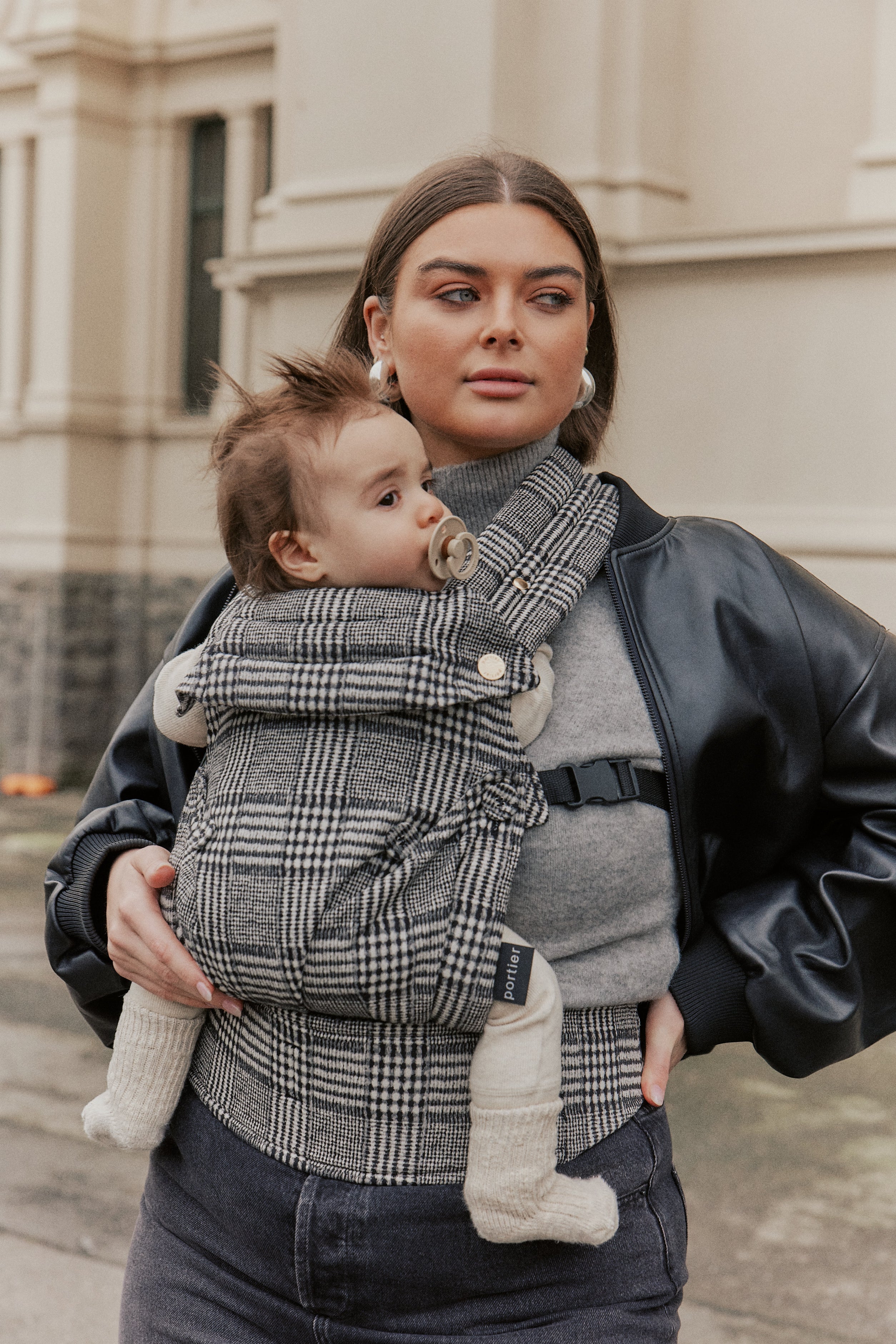 portier limitless baby carrier presents a modern fusion of style and functionality. fashioned from woven cotton jacquard fabric it gives parents the freedom to lean into their new lifestyle without limitation.